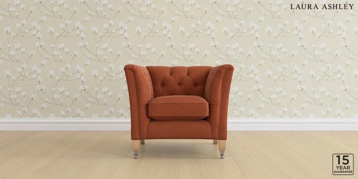6.12.13 Buy Chatsworth Button Back by Laura Ashley Armchair Harley Terracotta Orange Straight Chrome Castor - Light Oak from the Next UK online shop Click here to use our accessible website