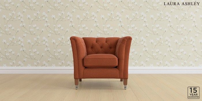 6.12.13 Buy Chatsworth Button Back by Laura Ashley Armchair Harley Terracotta Orange Straight Chrome Castor - Teak from the Next UK online shop Click here to use our accessible website