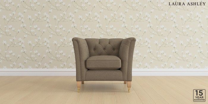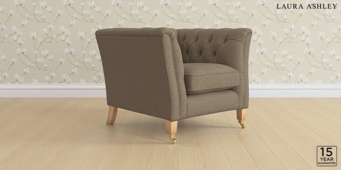 6.12.1 Buy Chatsworth Button Back by Laura Ashley Armchair Harley Truffle Natural Straight Brass Castor - Light Oak from the Next UK online shop Click here to use our accessible website