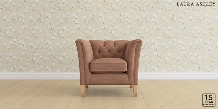 6.12.1 Buy Chatsworth Button Back by Laura Ashley Armchair Kinsham Rust Orange Straight Mid - Light Oak from the Next UK online shop Click here to use our accessible website
