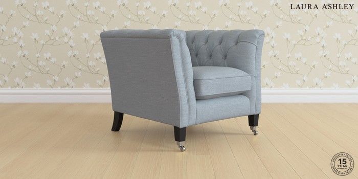 6.12.1 Buy Chatsworth Button Back by Laura Ashley Armchair Kinsham Seaspray Blue Straight Chrome Castor - Black from the Next UK online shop Click here to use our accessible website