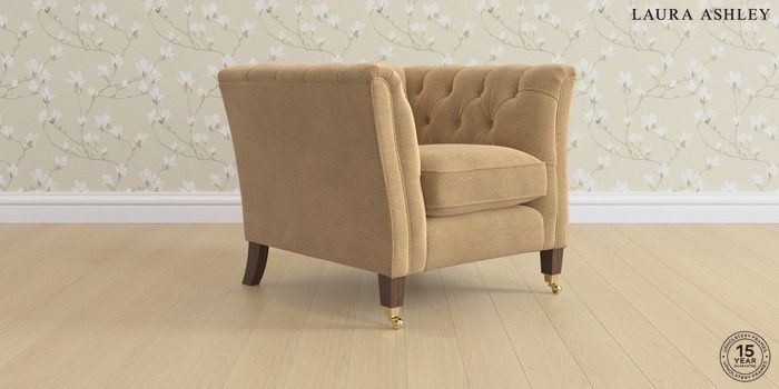 6.12.1 Buy Chatsworth Button Back by Laura Ashley Armchair Lundar Chenille Caramel Natural Straight Brass Castor - Chestnut from the Next UK online shop Click here to use our accessible website