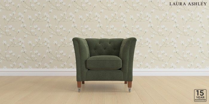 6.12.1 Buy Chatsworth Button Back by Laura Ashley Armchair Lundar Chenille Ivy Green Straight Chrome Castor - Teak from the Next UK online shop Click here to use our accessible website