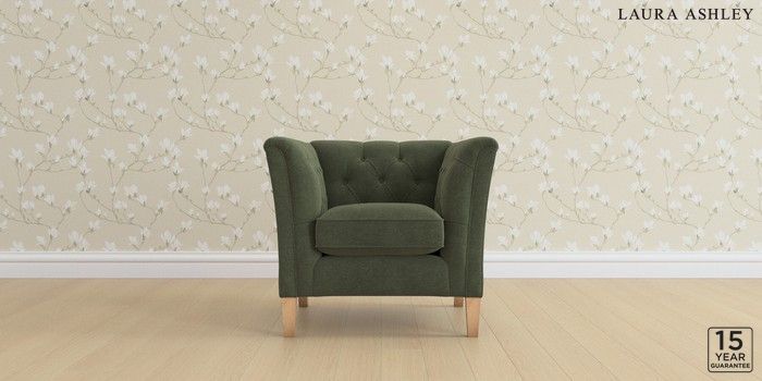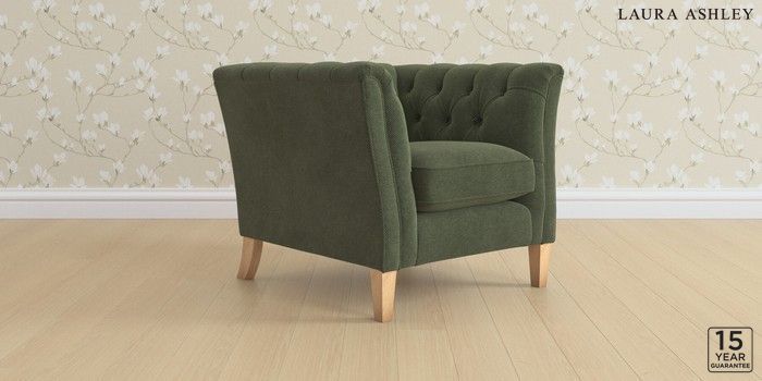 6.12.1 Buy Chatsworth Button Back by Laura Ashley Armchair Lundar Chenille Ivy Green Straight Mid - Light Oak from the Next UK online shop Click here to use our accessible website