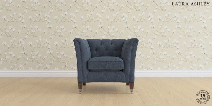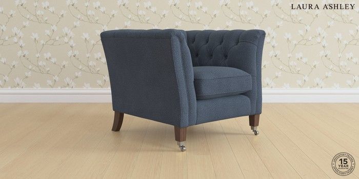 6.12.1 Buy Chatsworth Button Back by Laura Ashley Armchair Lundar Chenille Navy Blue Straight Chrome Castor - Chestnut from the Next UK online shop Click here to use our accessible website