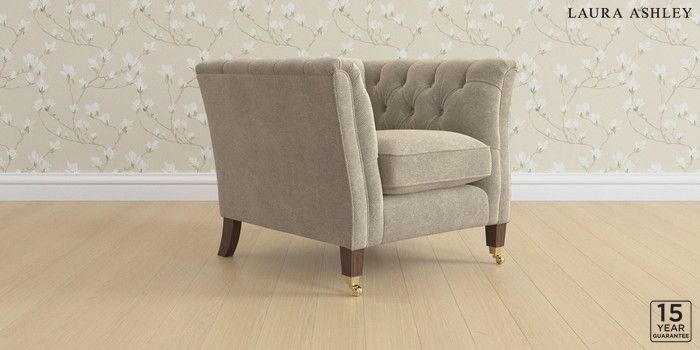 6.12.1 Buy Chatsworth Button Back by Laura Ashley Armchair Lundar Chenille Truffle Natural Straight Brass Castor - Chestnut from the Next UK online shop Click here to use our accessible website