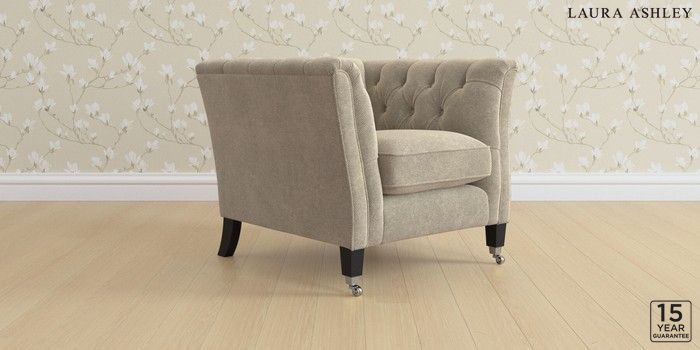 6.12.1 Buy Chatsworth Button Back by Laura Ashley Armchair Lundar Chenille Truffle Natural Straight Chrome Castor - Black from the Next UK online shop Click here to use our accessible website