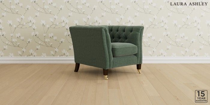 6.12.1 Buy Chatsworth Button Back by Laura Ashley Armchair Nantmor Fern Green Straight Brass Castor - Chestnut from the Next UK online shop Click here to use our accessible website