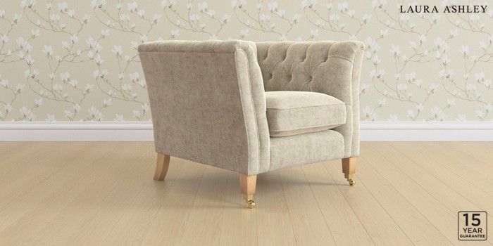 6.12.1 Buy Chatsworth Button Back by Laura Ashley Armchair Nantmor Truffle Natural Straight Brass Castor - Light Oak from the Next UK online shop Click here to use our accessible website