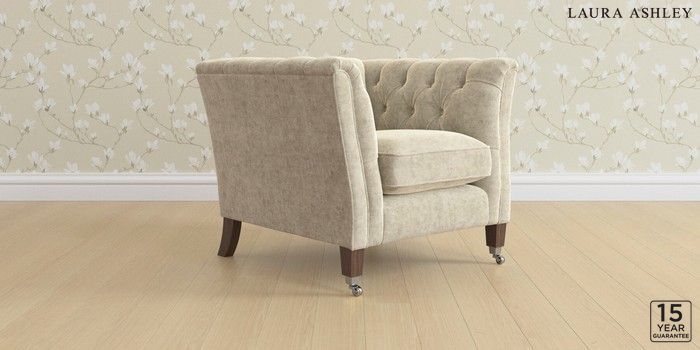 6.12.1 Buy Chatsworth Button Back by Laura Ashley Armchair Nantmor Truffle Natural Straight Chrome Castor - Chestnut from the Next UK online shop Click here to use our accessible website