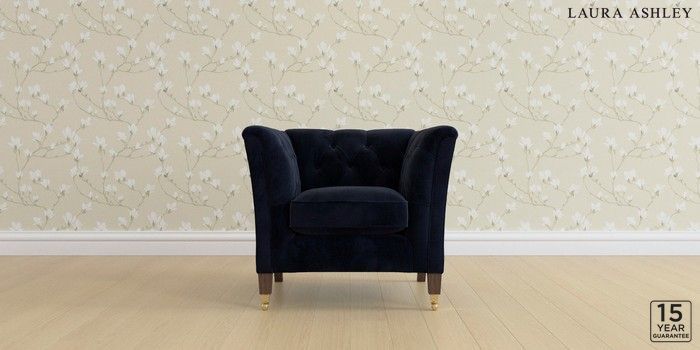 6.12.1 Buy Chatsworth Button Back by Laura Ashley Armchair Orla Midnight Navy Straight Brass Castor - Chestnut from the Next UK online shop Click here to use our accessible website