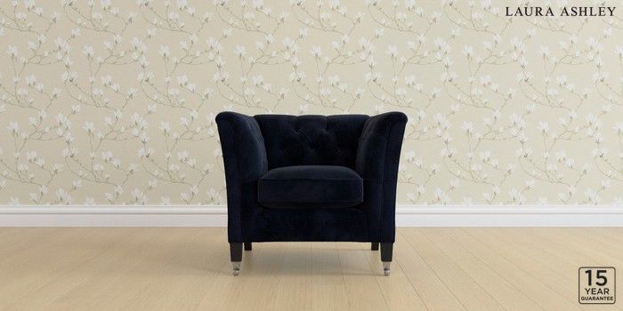6.12.1 Buy Chatsworth Button Back by Laura Ashley Armchair Orla Midnight Navy Straight Chrome Castor - Black from the Next UK online shop Click here to use our accessible website