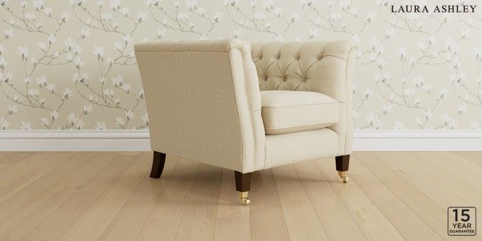 6.12.1 Buy Chatsworth Button Back by Laura Ashley Armchair Orla Oyster Natural Straight Brass Castor - Chestnut from the Next UK online shop Click here to use our accessible website