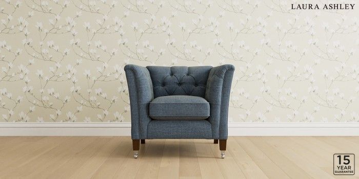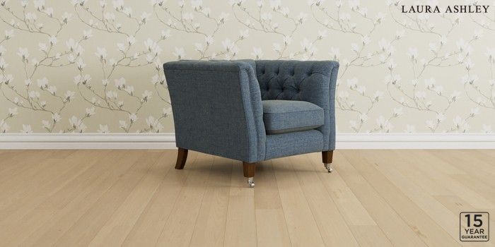 6.12.1 Buy Chatsworth Button Back by Laura Ashley Armchair Orla Seaspray Blue Straight Chrome Castor - Teak from the Next UK online shop Click here to use our accessible website
