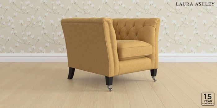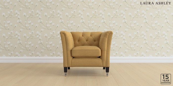 6.12.1 Buy Chatsworth Button Back by Laura Ashley Armchair Peyton Ochre Yellow Straight Chrome Castor - Black from the Next UK online shop Click here to use our accessible website