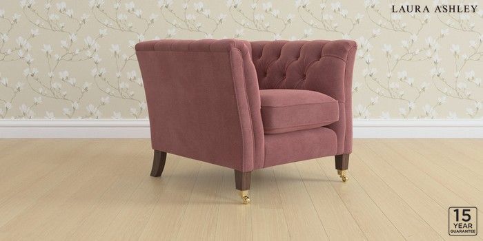 6.12.1 Buy Chatsworth Button Back by Laura Ashley Armchair Peyton Plum Purple Straight Brass Castor - Chestnut from the Next UK online shop Click here to use our accessible website