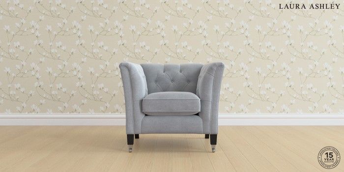 6.12.1 Buy Chatsworth Button Back by Laura Ashley Armchair Peyton Powder Blue Straight Chrome Castor - Black from the Next UK online shop Click here to use our accessible website