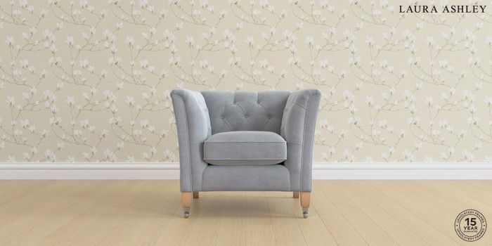 6.12.1 Buy Chatsworth Button Back by Laura Ashley Armchair Peyton Powder Blue Straight Chrome Castor - Light Oak from the Next UK online shop Click here to use our accessible website