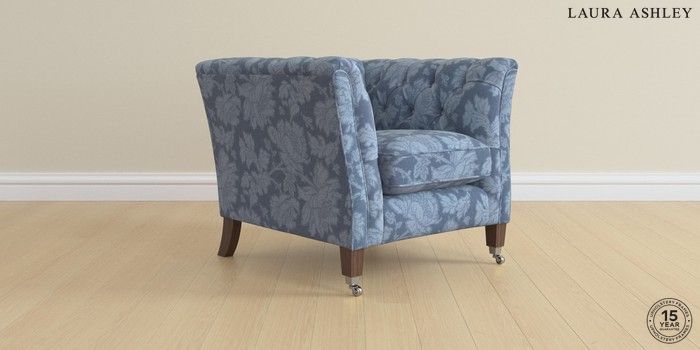 6.12.1 Buy Chatsworth Button Back by Laura Ashley Armchair Tamara Dusky Seaspray Blue Straight Chrome Castor - Chestnut from the Next UK online shop Click here to use our accessible website