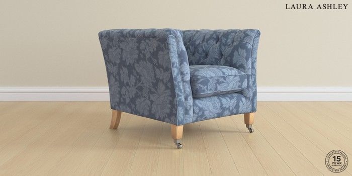 6.12.1 Buy Chatsworth Button Back by Laura Ashley Armchair Tamara Dusky Seaspray Blue Straight Chrome Castor - Light Oak from the Next UK online shop Click here to use our accessible website
