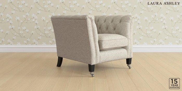 6.12.1 Buy Chatsworth Button Back by Laura Ashley Armchair Tichwell Stone Natural Straight Chrome Castor - Black from the Next UK online shop Click here to use our accessible website