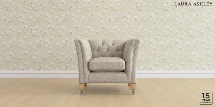 6.12.1 Buy Chatsworth Button Back by Laura Ashley Armchair Tichwell Stone Natural Straight Chrome Castor - Light Oak from the Next UK online shop Click here to use our accessible website