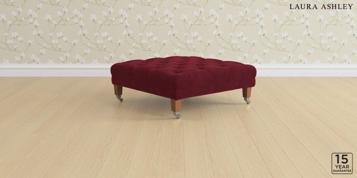 6.12.1 Buy Chatsworth Button Back by Laura Ashley Extra Large Footstool Alwyn Velvet Burgundy Red Straight Chrome Castor - Teak from the Next UK online shop Click here to use our accessible website