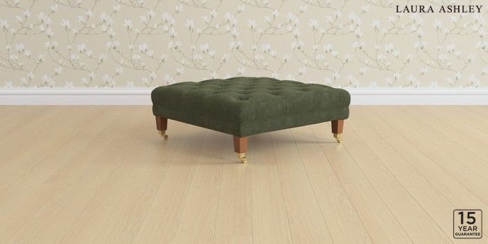 6.12.13 Buy Chatsworth Button Back by Laura Ashley Extra Large Footstool Alwyn Velvet Ivy Green Straight Brass Castor - Teak from the Next UK online shop Click here to use our accessible website