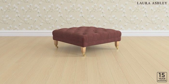 6.12.1 Buy Chatsworth Button Back by Laura Ashley Extra Large Footstool Edwin Chenille Burgundy Red Straight Brass Castor - Light Oak from the Next UK online shop Click here to use our accessible website