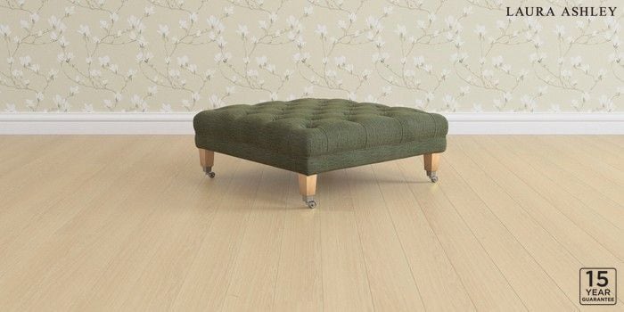 6.12.1 Buy Chatsworth Button Back by Laura Ashley Extra Large Footstool Edwin Chenille Hedgerow Green Straight Chrome Castor - Light Oak from the Next UK online shop Click here to use our accessible website
