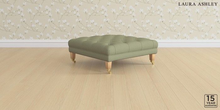 6.12.1 Buy Chatsworth Button Back by Laura Ashley Extra Large Footstool Edwin Herringbone Hedgerow Green Straight Brass Castor - Light Oak from the Next UK online shop Click here to use our accessible website