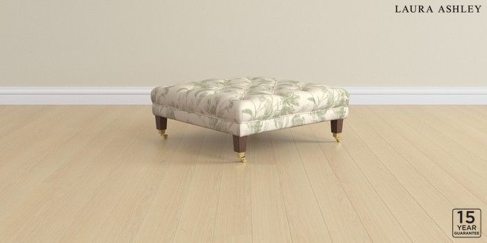 6.12.1 Buy Chatsworth Button Back by Laura Ashley Extra Large Footstool Gosford Weave Sage Green Straight Brass Castor - Chestnut from the Next UK online shop Click here to use our accessible website