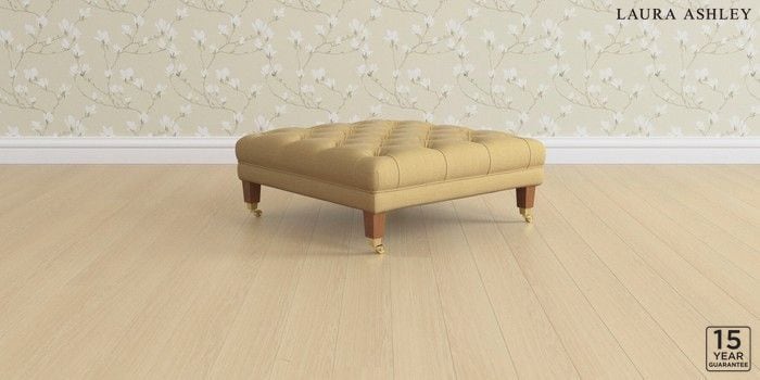 6.12.1 Buy Chatsworth Button Back by Laura Ashley Extra Large Footstool Kinsham Ochre Yellow Straight Brass Castor - Teak from the Next UK online shop Click here to use our accessible website
