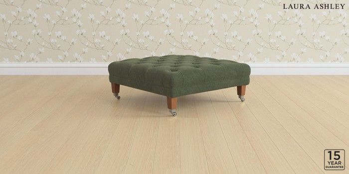 6.12.13 Buy Chatsworth Button Back by Laura Ashley Extra Large Footstool Lundar Chenille Ivy Green Straight Chrome Castor - Teak from the Next UK online shop Click here to use our accessible website