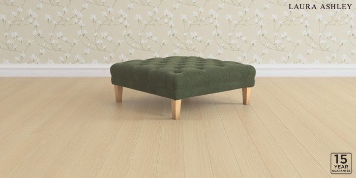 6.12.13 Buy Chatsworth Button Back by Laura Ashley Extra Large Footstool Lundar Chenille Ivy Green Straight Mid - Light Oak from the Next UK online shop Click here to use our accessible website