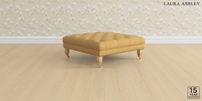 6.12.1 Buy Chatsworth Button Back by Laura Ashley Extra Large Footstool Peyton Ochre Yellow Straight Brass Castor - Light Oak from the Next UK online shop Click here to use our accessible website