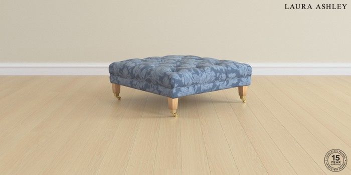 6.12.1 Buy Chatsworth Button Back by Laura Ashley Extra Large Footstool Tamara Dusky Seaspray Blue Straight Brass Castor - Light Oak from the Next UK online shop Click here to use our accessible website