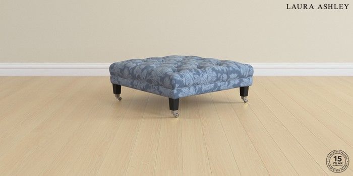 6.12.1 Buy Chatsworth Button Back by Laura Ashley Extra Large Footstool Tamara Dusky Seaspray Blue Straight Chrome Castor - Black from the Next UK online shop Click here to use our accessible website