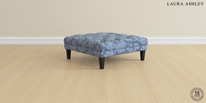 6.12.1 Buy Chatsworth Button Back by Laura Ashley Extra Large Footstool Tamara Dusky Seaspray Blue Straight Mid - Black from the Next UK online shop Click here to use our accessible website
