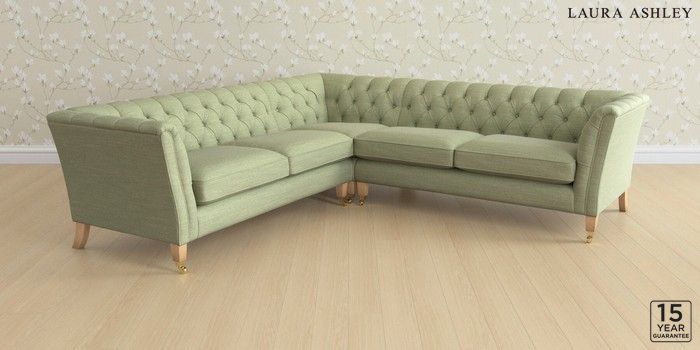 6.12.1 Buy Chatsworth Button Back by Laura Ashley Medium Corner Sofa - Universal Kinsham Hedgerow Green Straight Brass Castor - Light Oak from the Next UK online shop Click here to use our accessible website