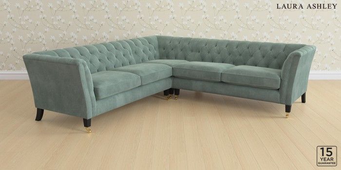 6.12.13 Buy Chatsworth Button Back by Laura Ashley Medium Corner Sofa - Universal Ailsworth Fern Green Straight Brass Castor - Black from the Next UK online shop Click here to use our accessible website