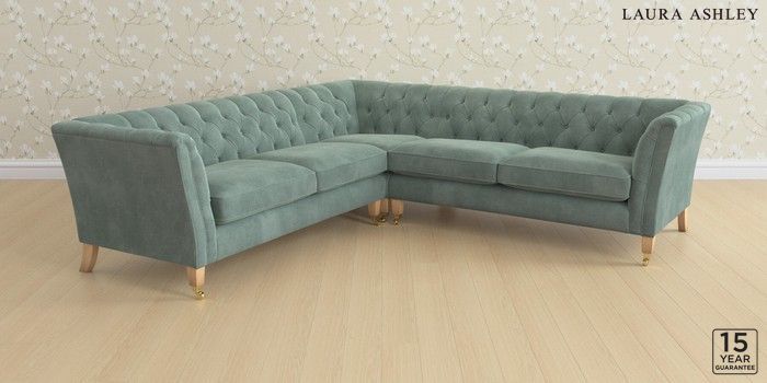 6.12.13 Buy Chatsworth Button Back by Laura Ashley Medium Corner Sofa - Universal Ailsworth Fern Green Straight Brass Castor - Light Oak from the Next UK online shop Click here to use our accessible website