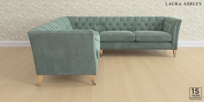 6.12.13 Buy Chatsworth Button Back by Laura Ashley Medium Corner Sofa - Universal Ailsworth Fern Green Straight Chrome Castor - Light Oak from the Next UK online shop Click here to use our accessible website