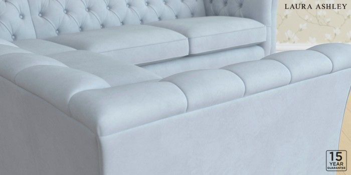 6.12.1 Buy Chatsworth Button Back by Laura Ashley Medium Corner Sofa - Universal Ailsworth Newport Blue Straight Chrome Castor - Teak from the Next UK online shop Click here to use our accessible website