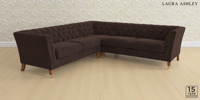 6.12.1 Buy Chatsworth Button Back by Laura Ashley Medium Corner Sofa - Universal Alwyn Velvet Chocolate Brown Straight Brass Castor - Teak from the Next UK online shop Click here to use our accessible website