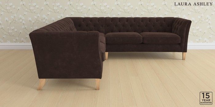 6.12.1 Buy Chatsworth Button Back by Laura Ashley Medium Corner Sofa - Universal Alwyn Velvet Chocolate Brown Straight Mid - Light Oak from the Next UK online shop Click here to use our accessible website