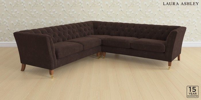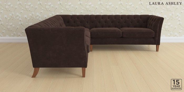 6.12.1 Buy Chatsworth Button Back by Laura Ashley Medium Corner Sofa - Universal Alwyn Velvet Chocolate Brown Straight Mid - Teak from the Next UK online shop Click here to use our accessible website