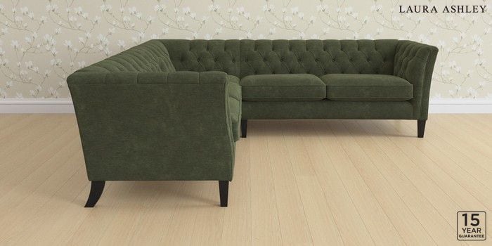 6.12.1 Buy Chatsworth Button Back by Laura Ashley Medium Corner Sofa - Universal Alwyn Velvet Ivy Green Straight Mid - Black from the Next UK online shop Click here to use our accessible website
