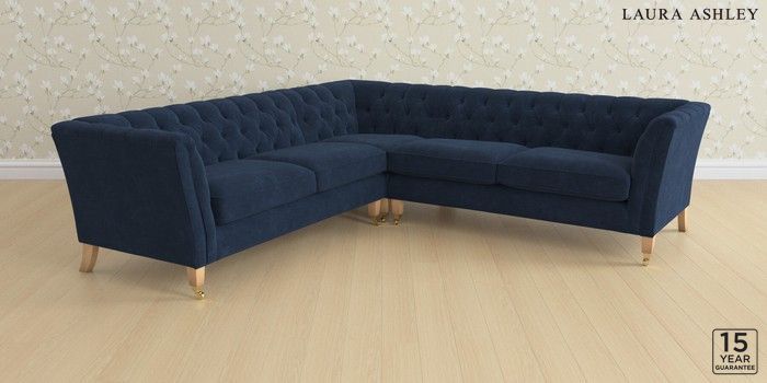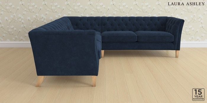 6.12.1 Buy Chatsworth Button Back by Laura Ashley Medium Corner Sofa - Universal Alwyn Velvet Midnight Navy Straight Mid - Light Oak from the Next UK online shop Click here to use our accessible website