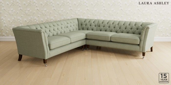 6.12.1 Buy Chatsworth Button Back by Laura Ashley Medium Corner Sofa - Universal Anneliese Sage Green Straight Chrome Castor - Chestnut from the Next UK online shop Click here to use our accessible website